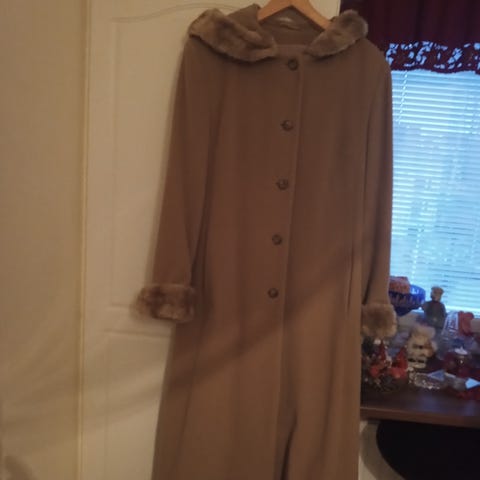 Koristeellinen puolipitkä takki turkiskauluksella