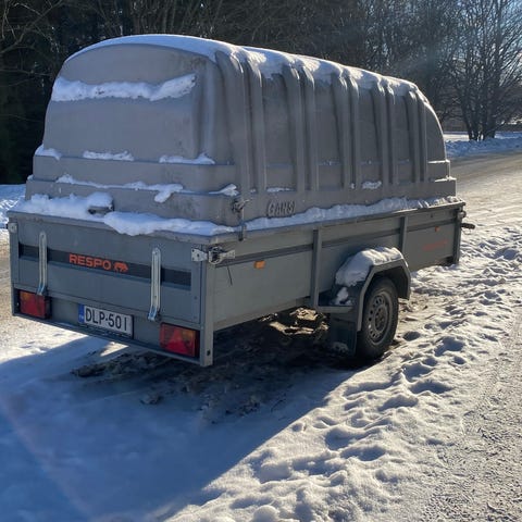 Peräkärry Starset WCG-664, vm 2000, valmistusmaa Suomi, teliakselisto, aisakippi, työntöjarrut, kahdet renkaat 155R13. Suurin sallitttu kokonaismassa 1600 kg, omamassa 420 kg, lujitemuovikuomu 50 kg. Kokonaispituus 4800 mm, kokonaisleveys 1950, etuylitys 1650, takaylitys 1650, aisan pituus 1300, lavan laitojen korkeus 380, lavan sisäpituus 3300, lavan sisäleveys 1500. Myydään katsastettuna 2000 euroa. Haettu 12.2.26 vikalista katsastuksesta, jossa puutteita jarruissa ja takavalossa. Osaavalle helppo korjata, jolloin hinnasta voidaan neuvotella.