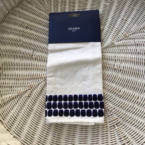 Uusi turkoosi pellava keittiöpyyhe, kokoa 47 x 70 cm. Design Klaus Haapaniemi 2024.