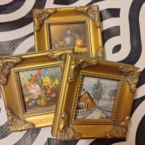 Kaksi mustilla kehyksillä varustettua sisustustaulua: