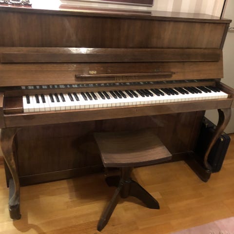 Hellas pystypiano puuviilupinnalla. Akustinen piano, jossa täyskoskettimisto ja kolme poljinta. Sopii kotikäyttöön ja harjoitteluun.