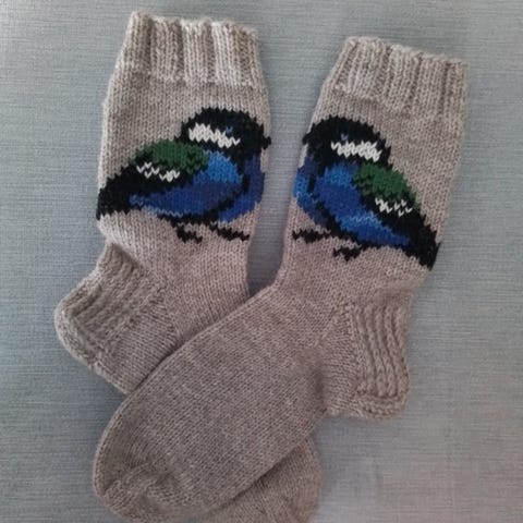 Neulottu Novita 7-veljestä langalla. Pohjan pituus 26 cm. Varren pituus 24 cm (nilkkaan asti)