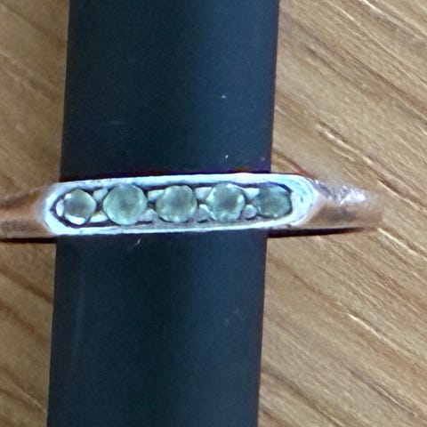 Kultainen naisten sormus, jossa etuosaan istutettuja 9 safiireja. Sormus on siro ja kapea, ja se sopii käytettäväksi yksinään tai muiden sormusten rinnalla. Materiaalina on 14k kulta ja kivenä safiiri. Hyvässä kunnossa.