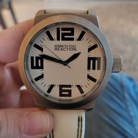 Myydään Kenneth Colen rannekello. Kello hyvässä kunnossa, mutta vaatii paristonvaihdon. Kellotaulun lasissa myös pieni naarmu. Naarmu näkyy ainoastaan tietyssä valossa, ei siis ilmeinen.