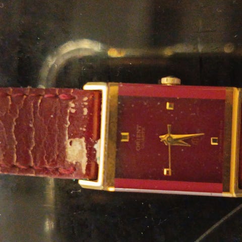 Toimiva naisten rannekello. Paristo on juuri vaihdettu. Ranneke ei ole hyvässä kunnossa.