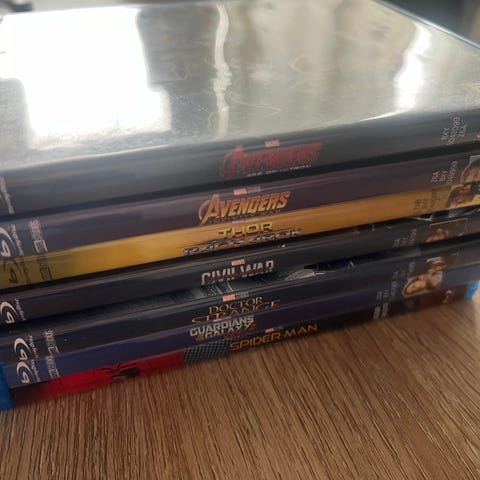 Kaikki MCU Infinity Sagan elokuvat Blu Rayna. Haku tai voin mahdollisesti tuoda muuallekin PK-seudulle. Hinta on kaikista 23 elokuvasta.