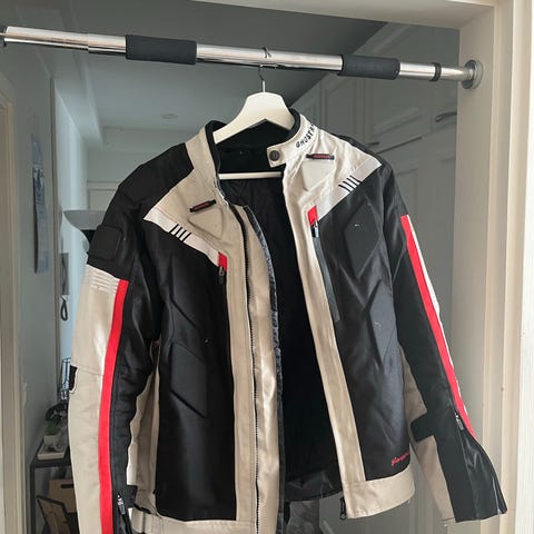 Takki ja housut koko 130. suojat polvissa, selässä, olkapää ja kyynärpää.