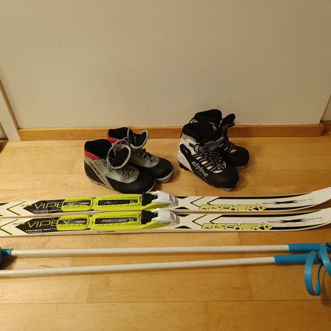 Powah lasten maastohiihtosukset, monot ja sauvat. Sukset, sauvat ja monot ovat vaaleanpunaisen ja valkoisen sävyisiä sydänkuvioilla. Suksissa on siteet valmiina. Monot ovat nilkkapituiset, vetoketjulla ja kiristysnyörillä suljettavat, lämpimällä vuorella. Setti soveltuu lapsen maastohiihtoon. Monot koko 31.