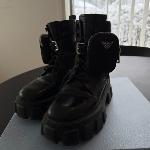 Myydään aidot Prada Monolith combat boots -maiharit irrotettavalla Re-Nylon taskulla.