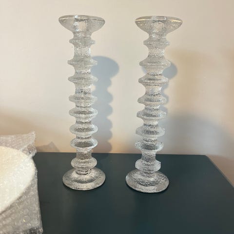 Tarpeettomana kaapissa olleet Iittala Festivo 6 solmuiset kynttilänjalat TS Signeerauksella. Hinta 68€/per kpl. Molemmat yhteensä 120€ alennettuna. Nouto tai postitus.