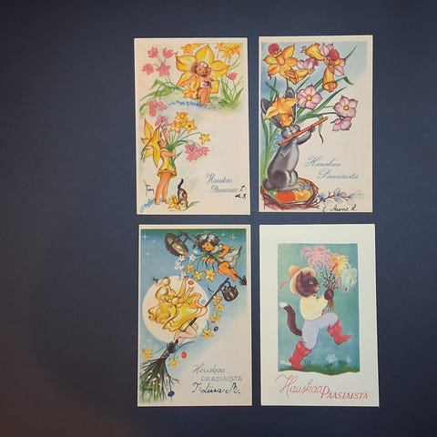 Pääsiäiskortteja vuosikymmenien takaa, jopa yli sadan vuoden