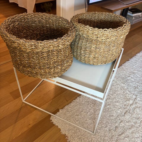Kaksi hieman eri kokoista koria, iso ja isohko. Ostettu aikanaan plantagenista, mutta ei tulleet ikinä käyttöön. Itse olin ajatellut kasvien suojaruukuiksi, mutta menee myös muussa säilytyksessä.
