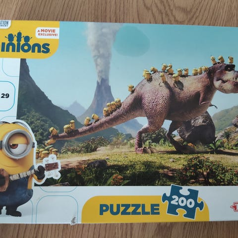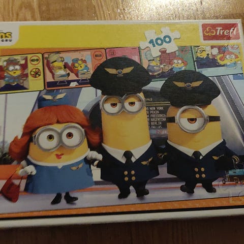 Minions palapeli, jossa 100 palaa. On Kaikki palat. Palapelin koko koottuna 42 x 30 cm.