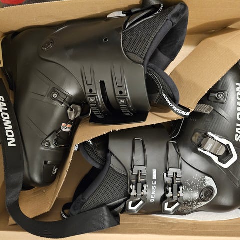 Salomon X-Wave 9 laskettelumonot. Mallissa on flex 100, carbonlink-rakenne, Sensifit-muotoilu sekä 3D-soljet (3D buckle ACT).