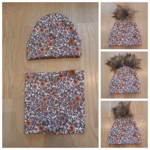 rib, ribbi, pipo, tupsupipo, kevätpipo, syyspipo, talvipipo, hattu, tuubihuivi, huivi, karvatupsu, unelmakudelmia, kukallinen, floral, copper bambi, eucalyptus, vintage, flower