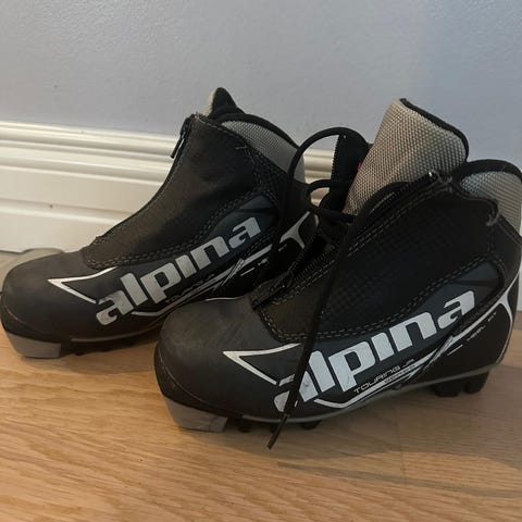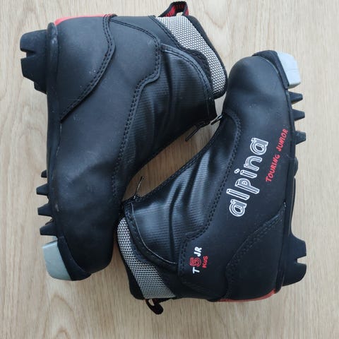Myydään pari kertaa käytetyt Alpine T5 Plus Jr lasten hiihtomonot, koko 34.