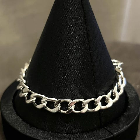 Iso ja painava ranneketju, joka valmistettu 925 Sterling hopeasta. Juuri kiillotettu koruliikkeessä, joten uudenveroinen naarmuja lukuunottamatta.