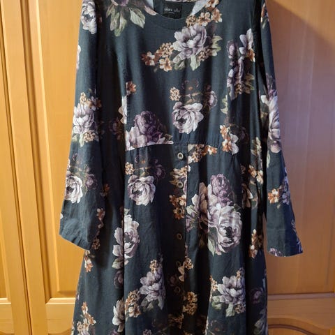 Pirteä porkkanan värinen, hihaton pellavamekko. Kokolapussa XL (mielestäni enemmän L)