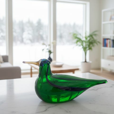 Toikan lasilintu, valmistettu Nuutajärvellä.