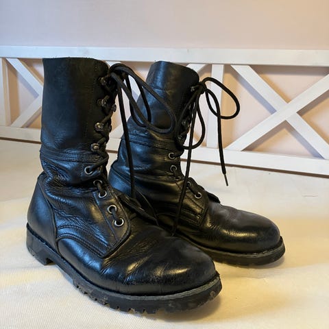 Bundeswehr maiharit. Pohjat varmaan olisi vaihtoa vailla, tai ainaki liimausta tuosta yhestä kohtaa(kuva). Ks2000 tai ks2002. Goodyear welt pohjaus, eli suutari vaihtaa helposti siihen vaikka uutta vibramia tms. 44/285mm . Pienellä huolenpidolla näistä vielä kengät saa pitkäksi aikaa.