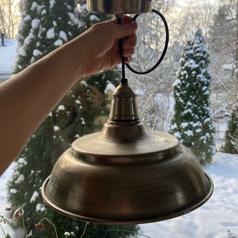 Uusvanha teollisuushenkinen kattolamppu, väri sininen/ turkoosi, tarkoituksella kulunut pinta.