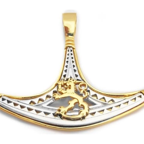 - Materiaalina 925-hopea, leijonan taustalla aito 18K kultaus