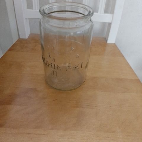 Myydään hyväkuntoinen, ehjä Riihimäen lasin Ihanne-narupurkki.