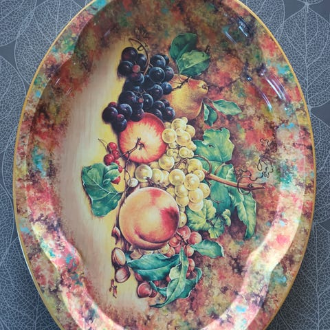 Vintage teräksinen tarjoilu- lautanen/ astia Ø 28 cm