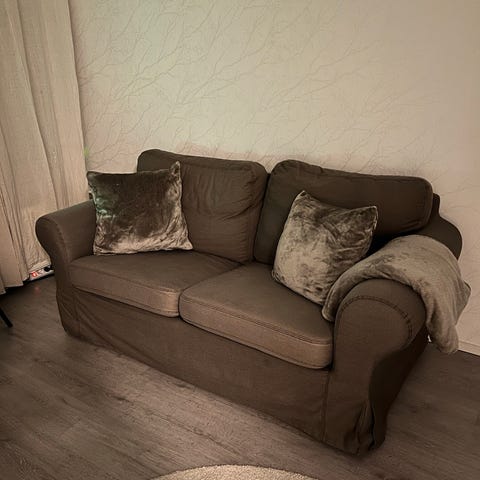 Nopealle noutajalle (haku viim. su 15.2) Jysk sohva, vaaleanharmaa kangasverhoilu ja puiset jalat. Selkänojassa napitettu viimeistely ja yhtenäinen istuintyyny. Sopii kahden–kolmen hengen istumapaikaksi olohuoneeseen tai muuhun oleskelutilaan. Muotoilu pyöristetty ja matalalinjainen. Materiaalina tekstiilipäällinen.