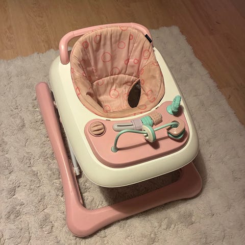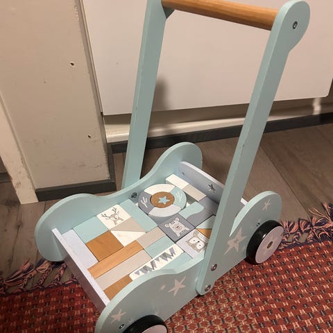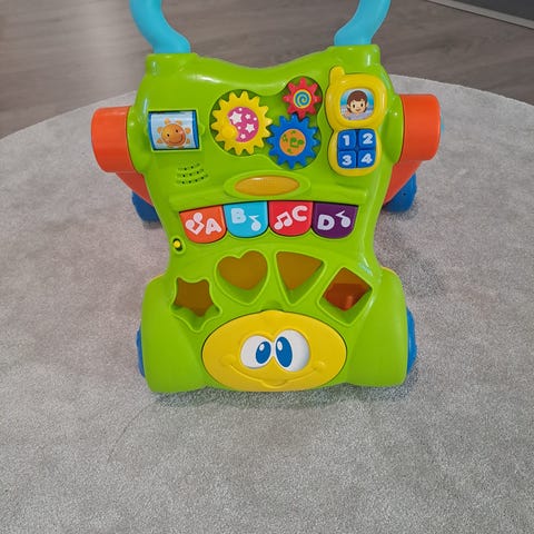 Kävelytuki jossa ratti ja soi musiikki näppäimistä ( patterit loppu), mutta toimii. Saa myös irti
