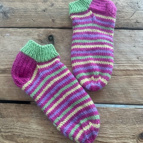 Koko noin 38-39, lavan pit. 24, 5 cm varren pit. kantapäästä alkaen 4 cm. Neulottu 7 veljestä Korpi ja Kaupunkilanka Kivijalka langasta, 75 % villaa + 25 % polyamidia. Hieno-/villapesu 40 astetta.