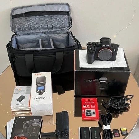 Kuvien Sony A7 järjestelmäkamera, full frame kenno, Sony FE linssikiinnitys.