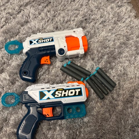 2 kpl x-shot pyssyä+kasa panoksia päälle. Hinta yht.6 e