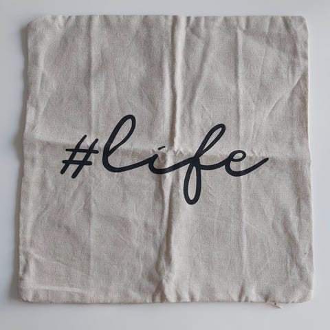 Valkoinen kimalle koristetyynyliina. Kimalle ei näy hyvin kuvissa. Siistissä kunnossa.