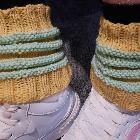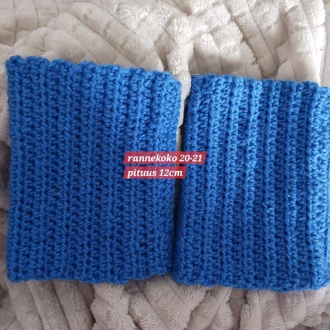 Kuvissa koot. Virkattu 2 krt langalla kelt. Villasekotus, sin valk novita 7veljestä lanka. 5e pari