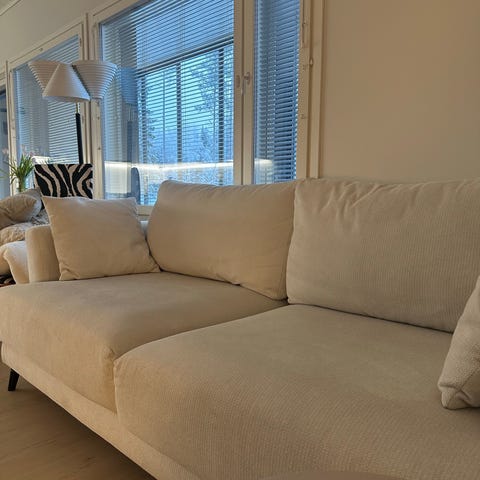 Shapes Sky sohva on suunniteltu rentoon oleiluun. Sohvan istuintyynyjen sydämestä löytyy muotoonvalettu kylmävaahto, jonka päällä on pehmeä höyhenpeite. Sohvan käyttöikää lisää sen irrotettava verhoilu. Esimerkkisohva muodostuu kahdesta 97,5 cm leveästä, käsinojallisesta osasta. Shapes tuotteet valmistetaan Etelä-Pohjanmaalla yli 30 vuoden kokemuksella.Laatusohva. Uutena 2000e
