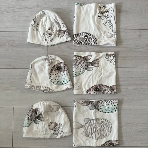 Sadetakki välikausitakkeja kaksi kappaletta ja niihin kuuluvat housut sekä kaksi kappaletta sadetakkeja ja kahdet sadehousut sekä kolme kappaletta välikausihoja koot 92cm -116 CM.