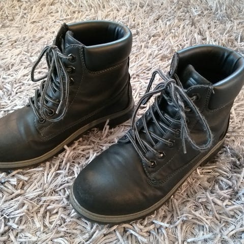 Fila nilkkurit vaaleanruskea. Nauhalliset nilkkurit, joissa on paksu, kuvioitu kumipohja paremman pidon takaamiseksi. Varren yläosa on pehmustettu tummemmalla materiaalilla. Sopivat arkikäyttöön ja ulkoiluun viileämmällä säällä käytetty 1 kerta 15e/tarjoa