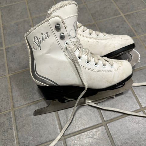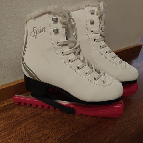 Spin taitoluistimet, koko EU 35. Väri valkoinen. Kuluneet mutta käyttökelposet, vaatii terotuksen.