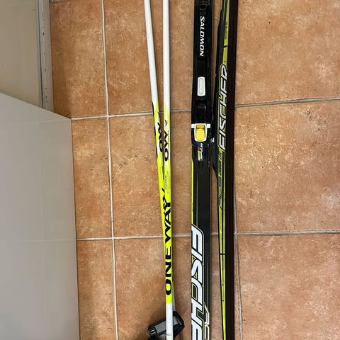 Fisher hiihtosukset 137cm SNS. Sauvat Ove Way 100cm. Kunto hyvä.