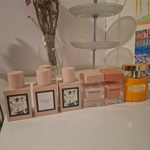 Oscar de laRenta hajuvesi. Pari kertaa suihkautettu. Kukkais hedelmäinen tuoksu.