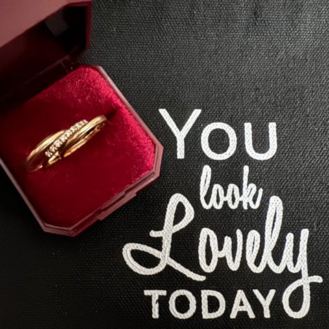 Kaksi lähes identtistä kultaista timanttisormusta. Toimii hyvin esim yksinkertaisemman sirmuksen molemmin puolin.