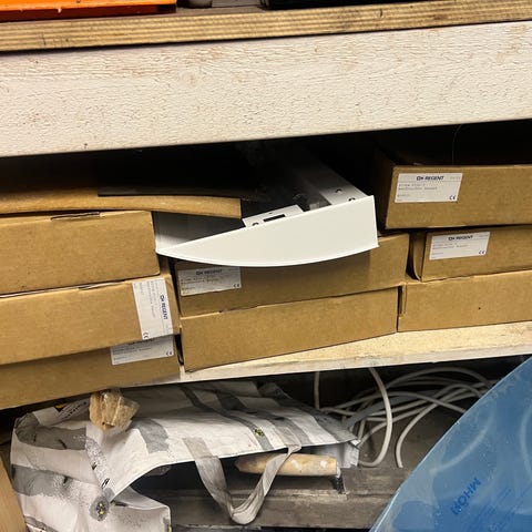 Kahdessa valaisimessa pientä pintanaarmua. Lisäksi yhden valaisimen sisältä puuttuu kiinnitysmutteri, jolla valaisimen kulma kiristyy. Valaisimen kulma on kuitenkin säädettävissä ja kiristettävissä toiselta puolelta. Tämä puute ei näy ulospäin. Ennen irrotusta spottivalaisimet todettu toimiviksi. Kohde myydään kokonaisuutena ja siinä kunnossa kuin se ostohetkellä on.