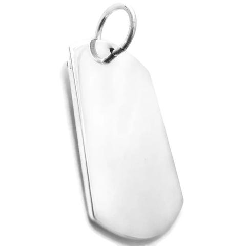 Tämä upea hopeinen laattariipus on valmistettu Suomessa ja siihen voi tehdä kaiverrukset sekä etu- että takapuolelle. Laatta on oksidoitu ensin lähes mustaksi ja sitten harjattu, mikä antaa sille hienon patinoituneen näköisen pinnan, josta kaiverrukset erottuvat erityisen hyvin verrattuna täysin kiiltävään ja vaaleaan hopeaan. Saatavilla on myös useita riipuksen tummempaan ilmeeseen sopivia ketjuvaihtoehtoja.
