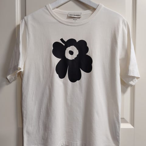 Marimekon Leiot collegepusero brodeeratulla Unikko -yksityiskohdalla. Koko S, kai-kai noin 59cm. Materiaali 100% puuvilla. Väri aprikoosi/vaaleanpunainen.