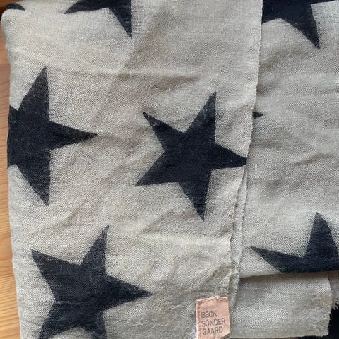 Myydään Becksöndergaard iso harmaa tähtihuivi. Materiaali 100 % puuvillla. Oikein siisti kunto, koko 90 cm x 185 cm.
