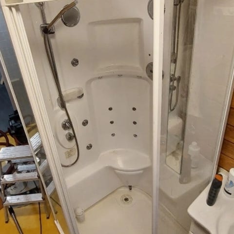 Saunaremontin ajan käytössä ollut siistikuntoinen suihkukaappi myydään tarpeettomana. Hyviä kuvia on hieman hankala saada, mutta kaappi on koottuna vessassa, jossa se on nähtävillä. Puretaan kun nouto on sovittu.