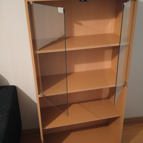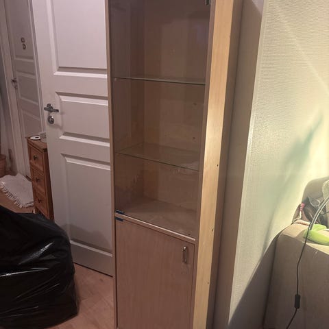 IKEA hyllykaappi lasihyllyillä, vaalea puu