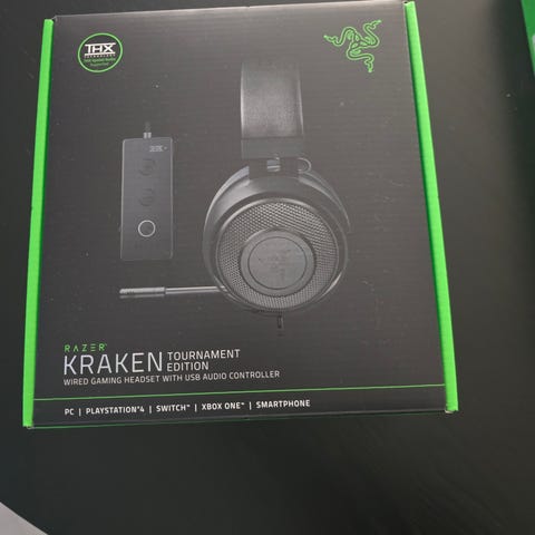 Razer Kraken -pelikuulokkeet. Over-ear-mallinen kuuloke, jossa on säädettävä sanka ja pehmustetut korvakupit. Kuulokkeissa on kiinteä puomimikrofoni ja johdollinen liitäntä 3,5 mm:n audioliittimellä. Väri musta. Soveltuu käytettäväksi esimerkiksi tietokoneen, pelikonsolin tai muun 3,5 mm kuulokeliitännällä varustetun laitteen kanssa.