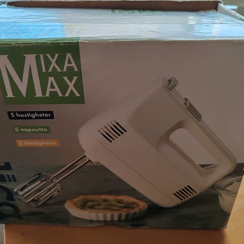 Täysin uusi, vielä paketissa oleva sähkövatkain. Vispilät tulevat paketin mukana.